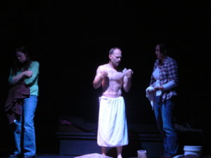 Somewhere between presenting the two Arthur plays, I saw a play the play “Torso” in Seattle. “Torso” was also written by a Seattle playwright, Keri Healey. I attended it because I knew the Director and one of the actors. Had I known what the play was about I probably would not have gone: Two different stories loosely joined together. In one story, a brother and sister (Margo and Dominick) plan and carry out the murder of their other brother (Anson). Late in the play, Dominick returns from killing his brother, covered in blood. While we watch in horror, he is stripped naked and the blood washed off him as he graphically describes beating his brother to death with a baseball bat. WOW!!! Audiences stayed away in droves but those who came were enthusiastic and the play made money. There was not a single complaint about the nudity.